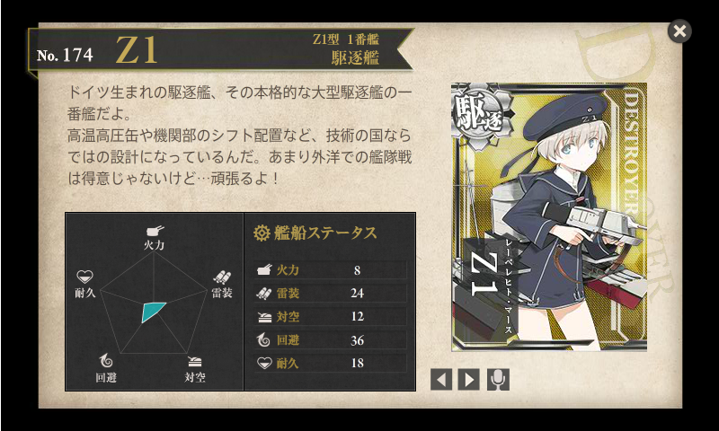 とうとう入手しましたZ1。と言っても48時間遠征を4回やれば手に入るっていうアレですが。